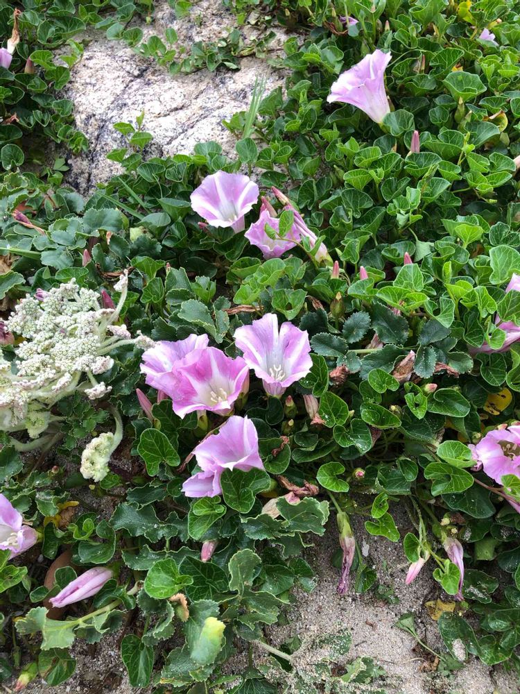 近くの浜辺に友達が来ると言うので出かけました。こんなところに花。娘大喜び。写真撮ってインスタしてね!って最近の3歳は😅