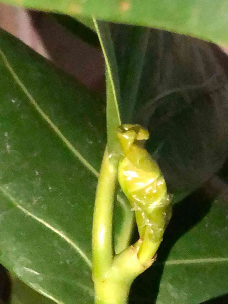 まるでモンシロチョウのサナギみたいな新芽になっちゃっています…。
