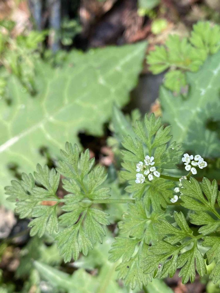 こんばんは😊セリ科みたいだから、ノハラジャクと思いましたが、葉の形が違うので、チャービル (ウイキョウゼリ)かな?と思いますが、自信なしです。😅