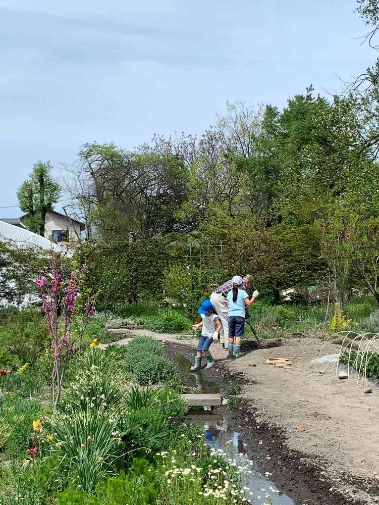 夫が川から水路をひいてくれました