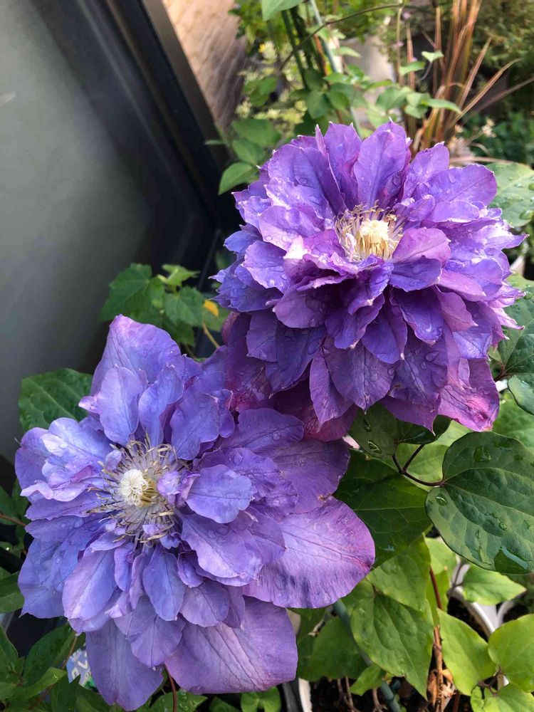 雨上がりの朝…八重咲きのクレマチスが元気に咲いています😊