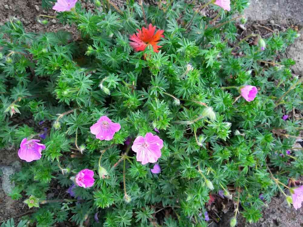 フウロ草でいいのかしら、私の好きな花です😌秋になると紅葉もするんですよ✌去年の葉🍁が一枚残ってました😂