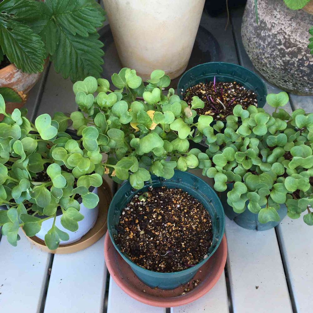 土を総入れ替えした左鉢のカイワレ大根は背が高くなりました。