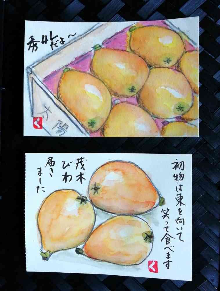 くまちゃんさんのびわ,いただきもの,絵手紙の投稿画像