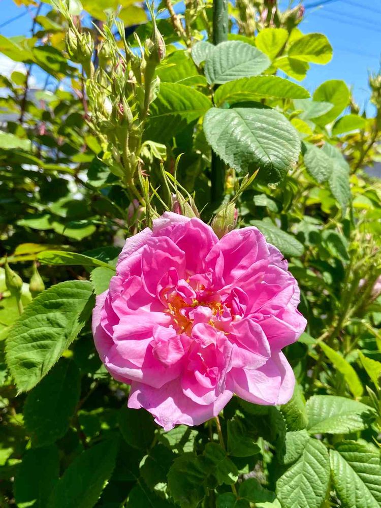 🌹ローズオットーの上品な香り💕🥰放置してた時はヒョロリ1枝だったのですが😅今は野性味溢れるトゲトゲモリモリの子です🦔蕾の膨らんだ時から香りますよ💕