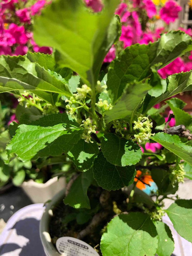 一年前に備北丘陵公園でお土産に購入したミニ盆栽で、4月初めまで枯れ枝ばかりで、枯らしてしまったかと心配していました。
