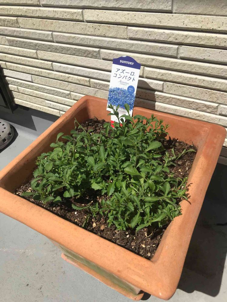 切り戻しした『アズーロコンパクト』(サントリー)💙大きめの鉢なので、裏の説明書通り3苗植えてます🌿🌿🌿1ヶ月後を楽しみに🎵記録用に🤳😊