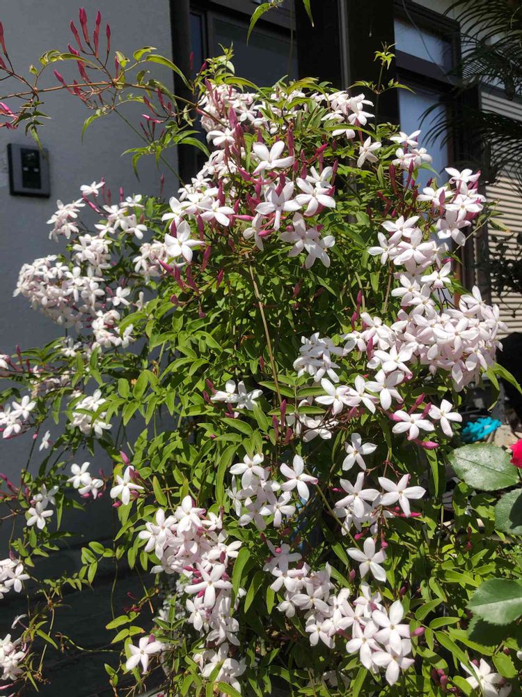 ハゴロモジャスミンがようやく咲きました。いい香りです。