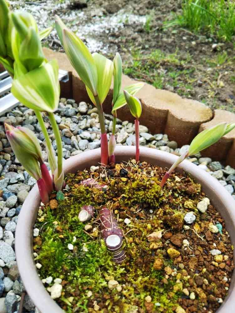 アマドコロ新潟県山北産生まれ、道の駅で購入五年目、中心から縁側に広がりました、秋に植え替えします。五月になりやっと暖かくなり、根が動いてくれました。
