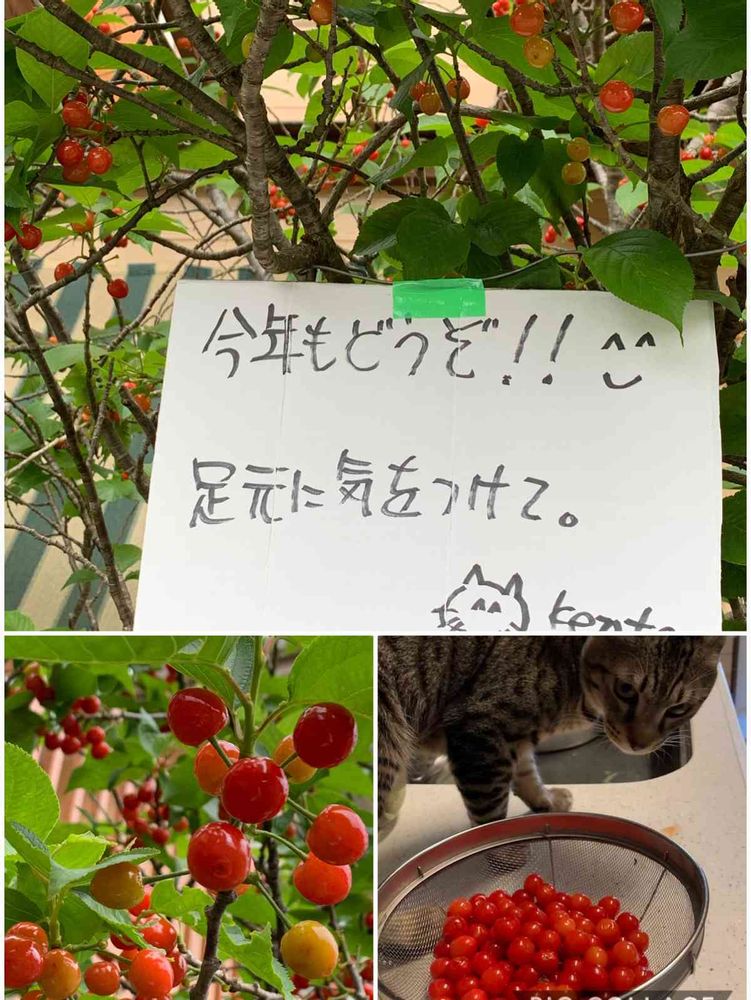 さくらんぼ🍒も嬉しかったけど、🦊Kentaさんのどうぞって書いた看板(?) と 一緒に採ってくれた優しさのプレゼントに感激しました❣️