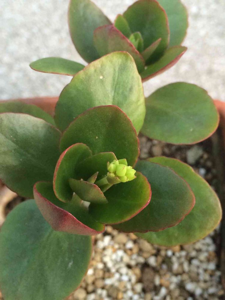 まっちゃんの?通り、カランコエみたいですよ〜 葉っぱの縁と裏側が赤くてかわいいよ♡