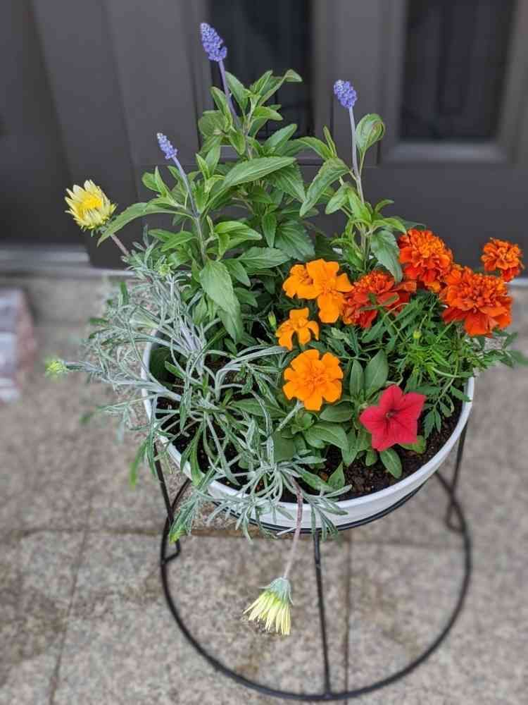 カラフルな色合いの寄せ植えさんですね🥰✨🌼🌿