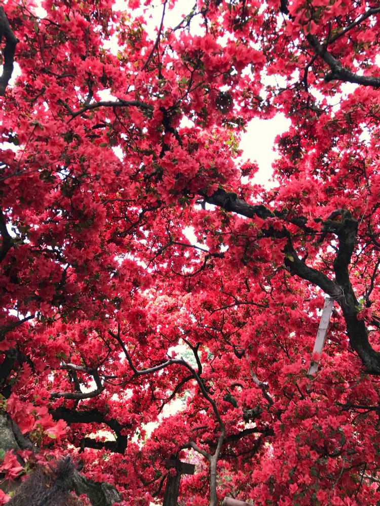 ここのツツジ達、枝ぶりがダイナミックで 背より高い木も多く、たくさんの花の下を歩けました🚶 赤いトンネルですね💗