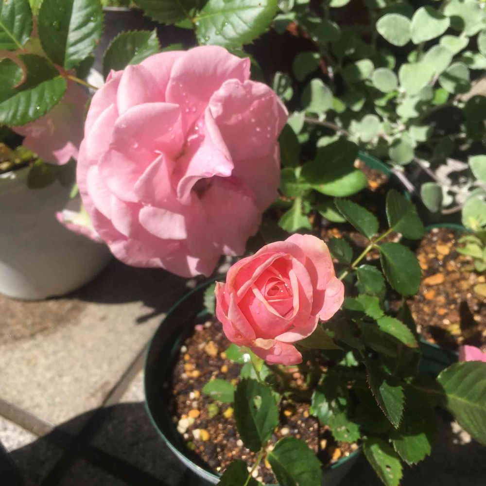 なんだかお花の同士でお話ししてるみたいで可愛いですね😍薔薇って挿し木で増えるんですね💕