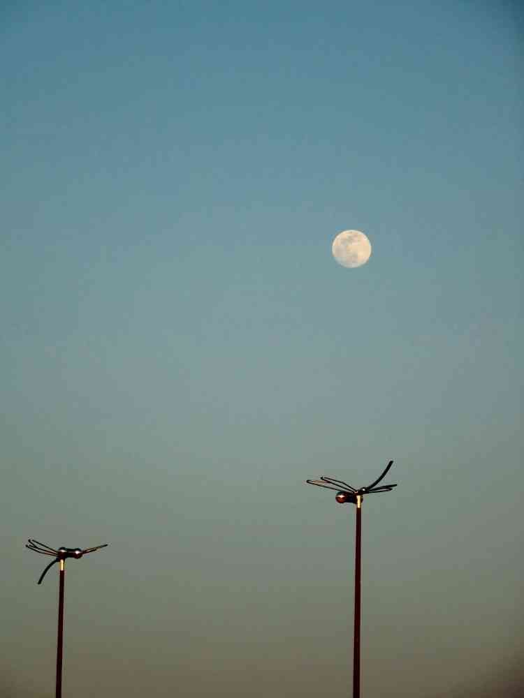 トンボの街灯と一緒にお月様も楽しそう🤭