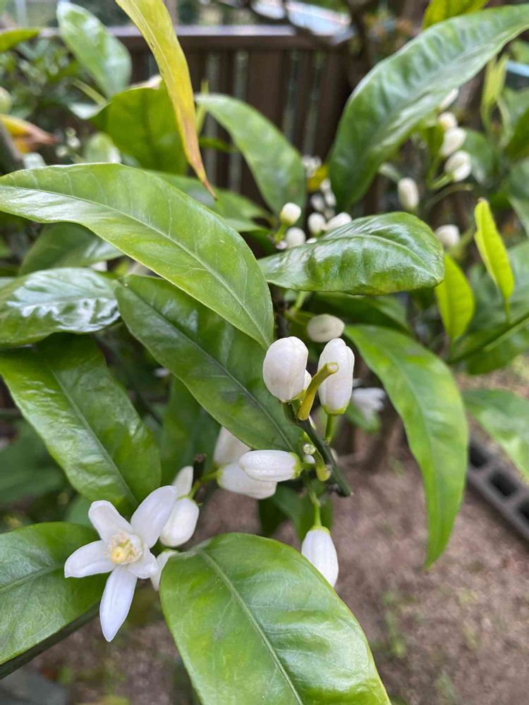 みかんの木に今年はたくさん花が付きました。優しい香りがします♡