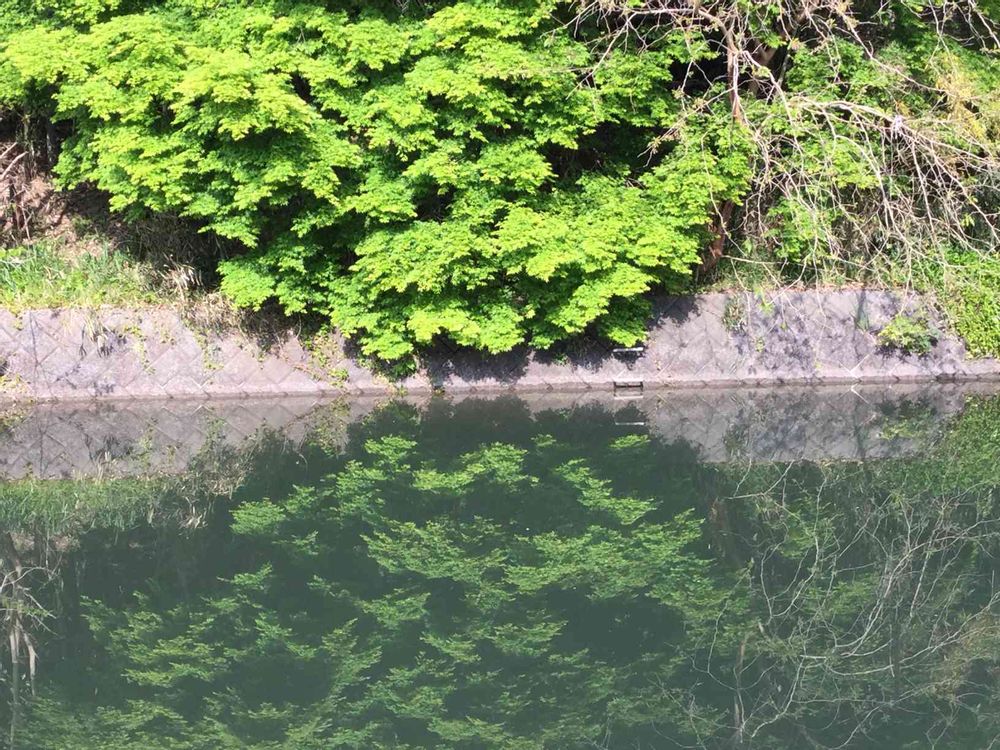 新緑の映る竜田川