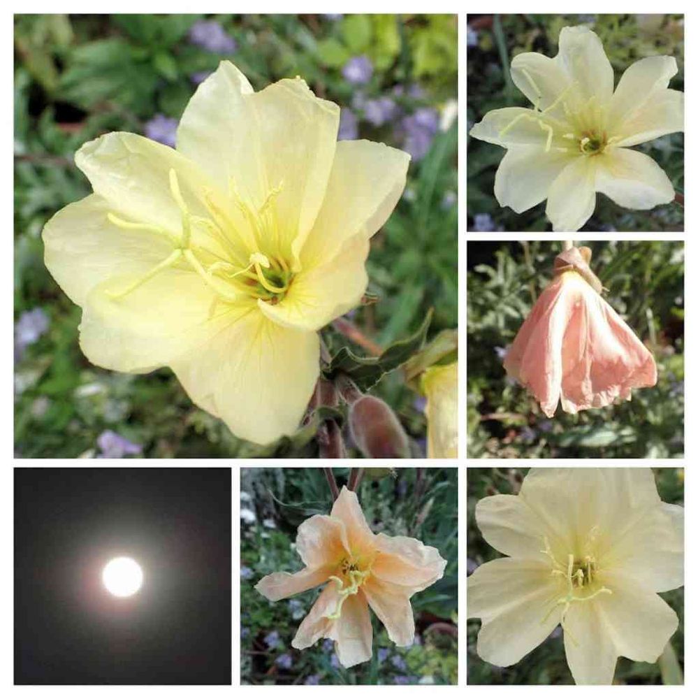 今夜の満月は、ネイティブアメリカンの暦によると、フラワームーンなのだそうです。いろいろなお花の咲く頃だから付いた名前なのですね😍エノテラ・オドラタ・サルフレアが咲いています😊子供のころ慣れ親しんだオオマツヨイグサ( Oenothera erythrosepala)を懐かしんで、購入したものです。これはオオマツヨイグサによく似た大輪の夜咲黄色花ですが、別種のオドラタの園芸品種です。オオマツヨイグサも、もともとは園芸品種として作出されたもので、鑑賞用だったものが逸出して雑草化したものだそうで、なるほど、こちらよりむしろオオマツヨイグサのほうが大輪で丸みがあって綺麗だったような気がします💦まあ、思い出補正がかかっているとは思いますが。。。😅いまは後から入ってきたメマツヨイグサに押されて全く見かけなくなりました、メマツヨイグサは花が小さくていまいちきれいじゃないんですよねー😢やはりもともとの野生種のほうが強いのかも。オドラタは、その名の通り、香りがあり、開花が進むとオレンジ色を帯びてしぼんでいきます。満月と月見草(ほんとの月見草は別種で白いお花ですが^^;)見つめあっているようでいい感じですねー😊