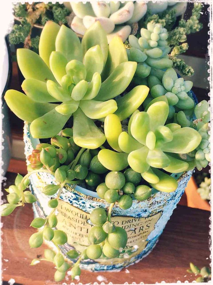 リメ缶のブルーと多肉のグリーンの組み合わせが すごく好き💞です❣