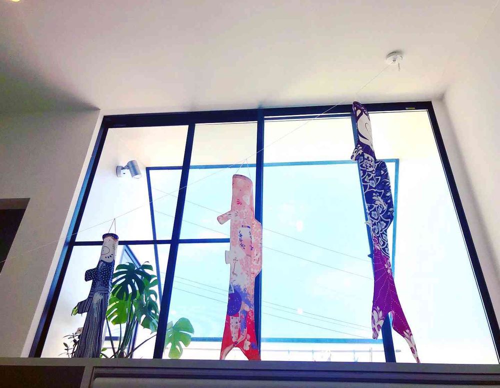 今年は初節句だったので、はじめて飾った鯉のぼり。