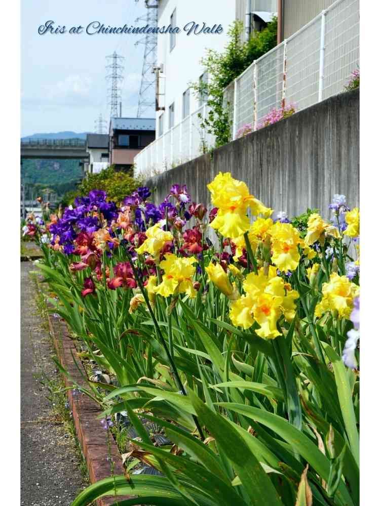 ちんちん電車遊歩道のアイリス、今が盛り…。🌺🌿🚶😁