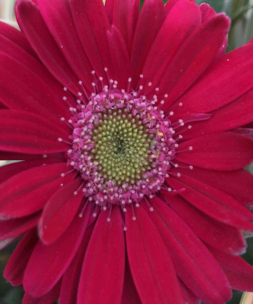 赤いガーベラ。真ん中からこんなにぴょんぴょん飛び出ているのに、初めて気がつきました。可愛い💕