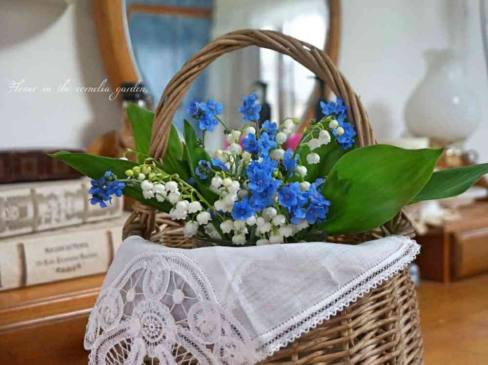 小さなお花のシノグロッサムとすずらんの可愛いさが藤のかごにピッタリ💕