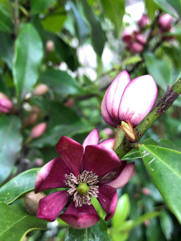 こんにちは💕はじめて見るお花だわ。ポートワインみたいなお色🍷ね。でもポートワインの甘い香りでなくて、バナナ園🍌🍌🍌😂😂😂
