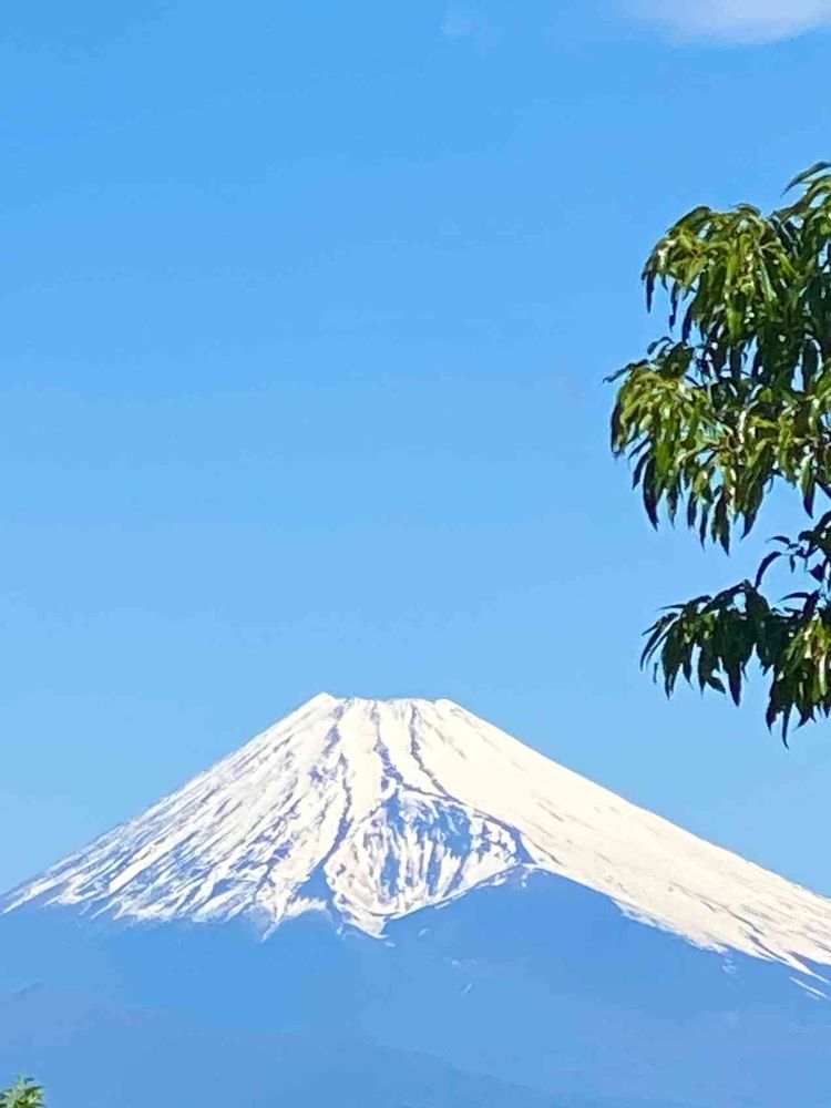 青い空と青い富士山の間に雪があり凄く素敵ですね〜😍💞💞綺麗〜😍💞💞