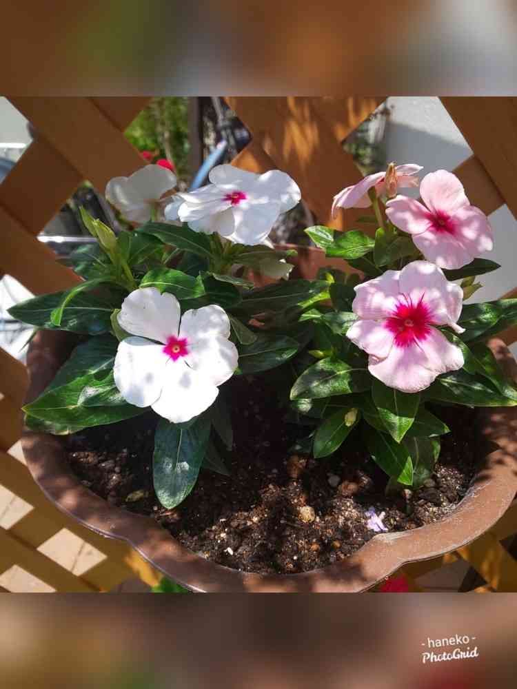仕方なく、お買い物のついでに店頭で売っていた日日草をお迎えしました。芯が濃ピンクの子二色。ん~、可愛い❤️