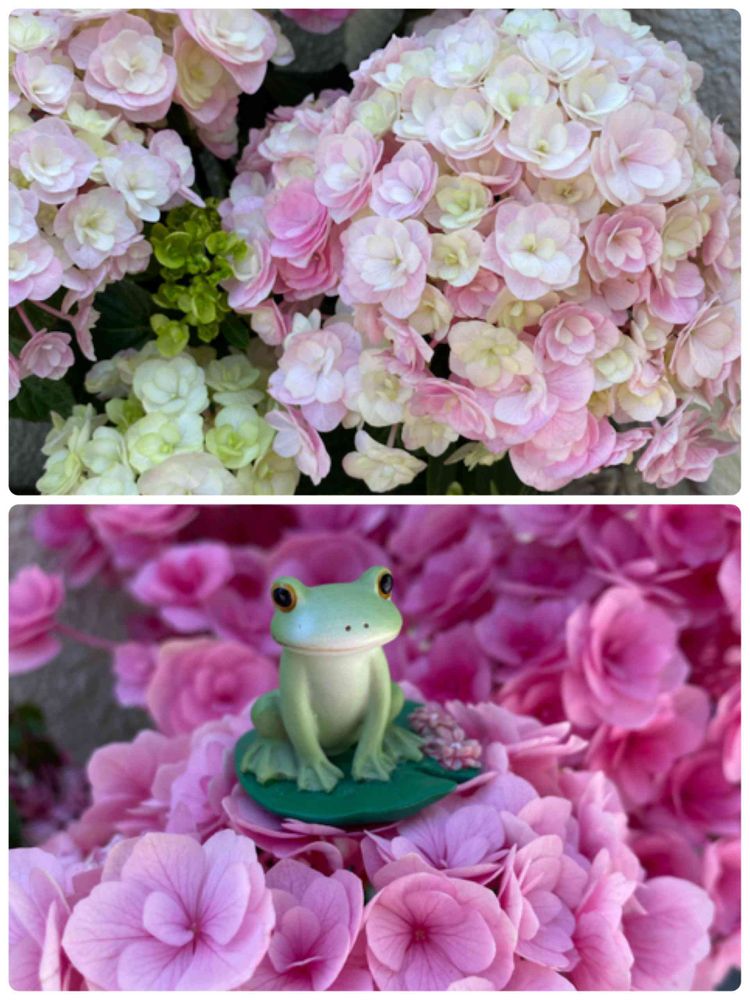こんな綺麗〜な紫陽花とコポたん🐸のコラボ💚