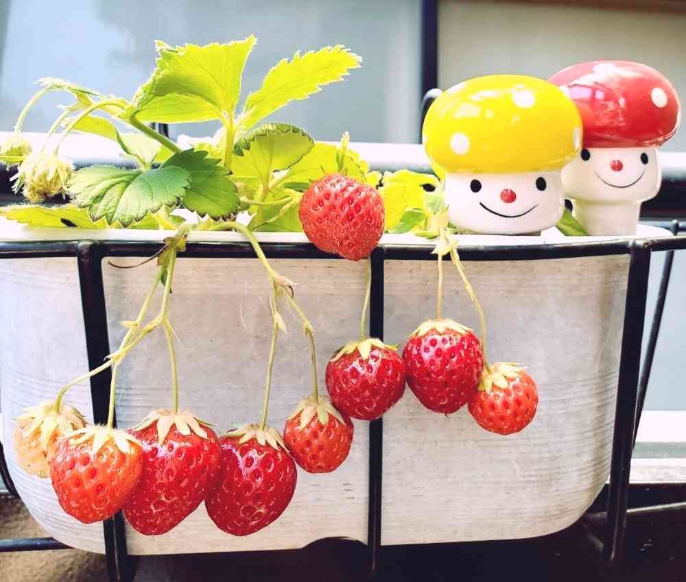 私は、プランターの端に根付かせて、実が🍓ぶら下がるようにしています🙋