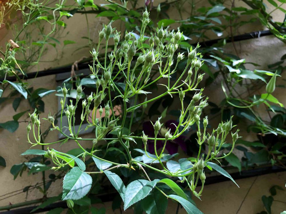 ロザリアンでも手に負えないと言われているポールズヒマヤランムスクの蕾です。一昨年地植えしたのですがどうにも枝の整理が出来ずツルには有り得ない程の強剪定をしました。でも今大変な?リバウンドです。