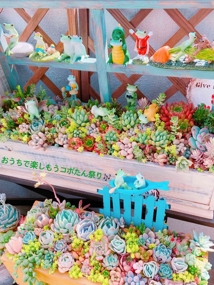 多肉ちゃんが可愛い〜うちにコポたん🐸とコラボ出来て良かった(⁎˃ᴗ˂⁎)💚💚💚✨