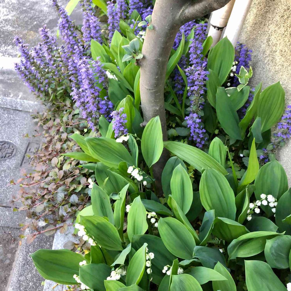 お出かけ先,スズランとアジュガ,白い花の投稿画像