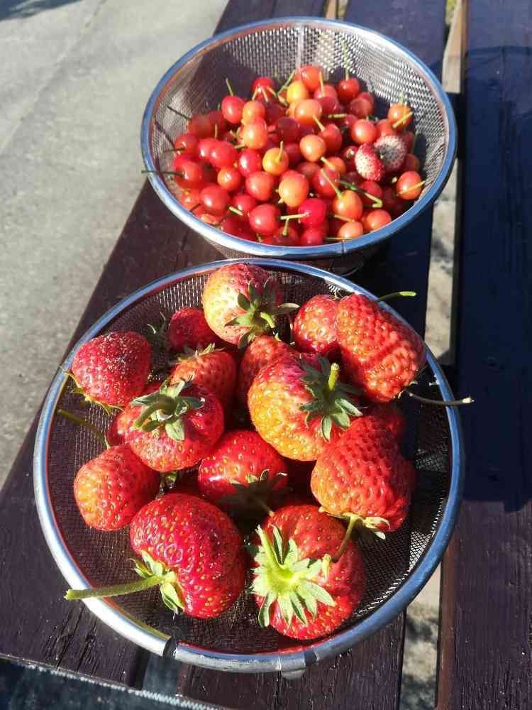 昨日に続いてサクランボがたくさん獲れました。イチゴは10日ぐらい前から毎日食卓を賑わせてくれています。
