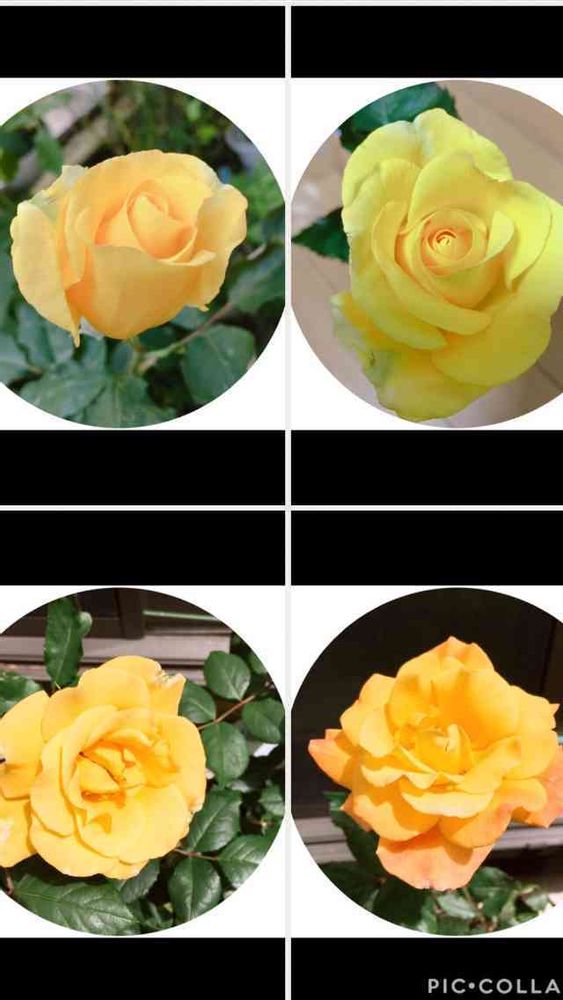 右上は、お部屋に✂️して飾ったので色合いが黄色そのままです。お外で日に当たると徐々に黄色からオレンジに変わって行きます。