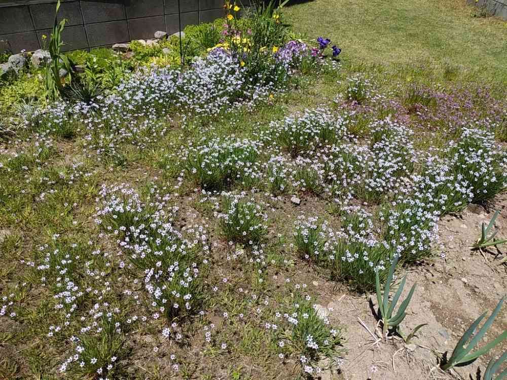 去年の5/15投稿のニワゼキショウが更に広がりを見せ小さなお花畑化してます😊