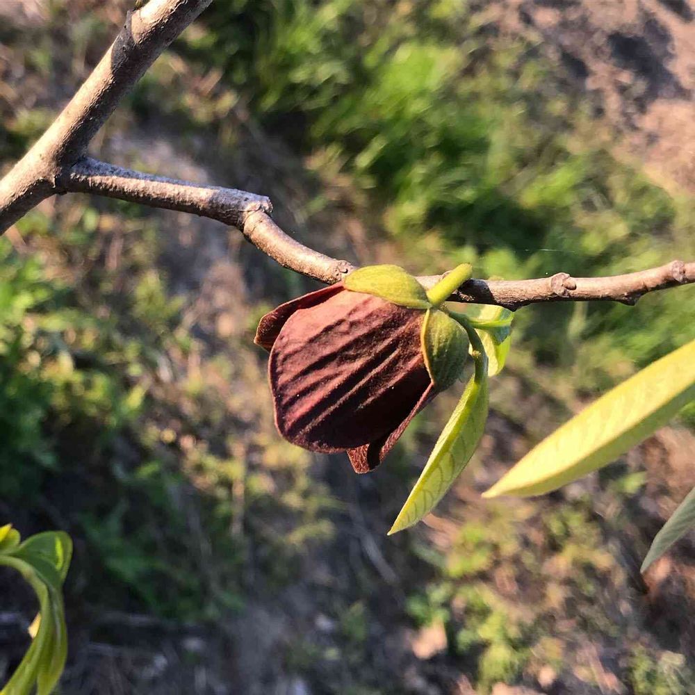 さて、今日の写真はポポーの花。いや、これはもう色がやばいですよね(笑)