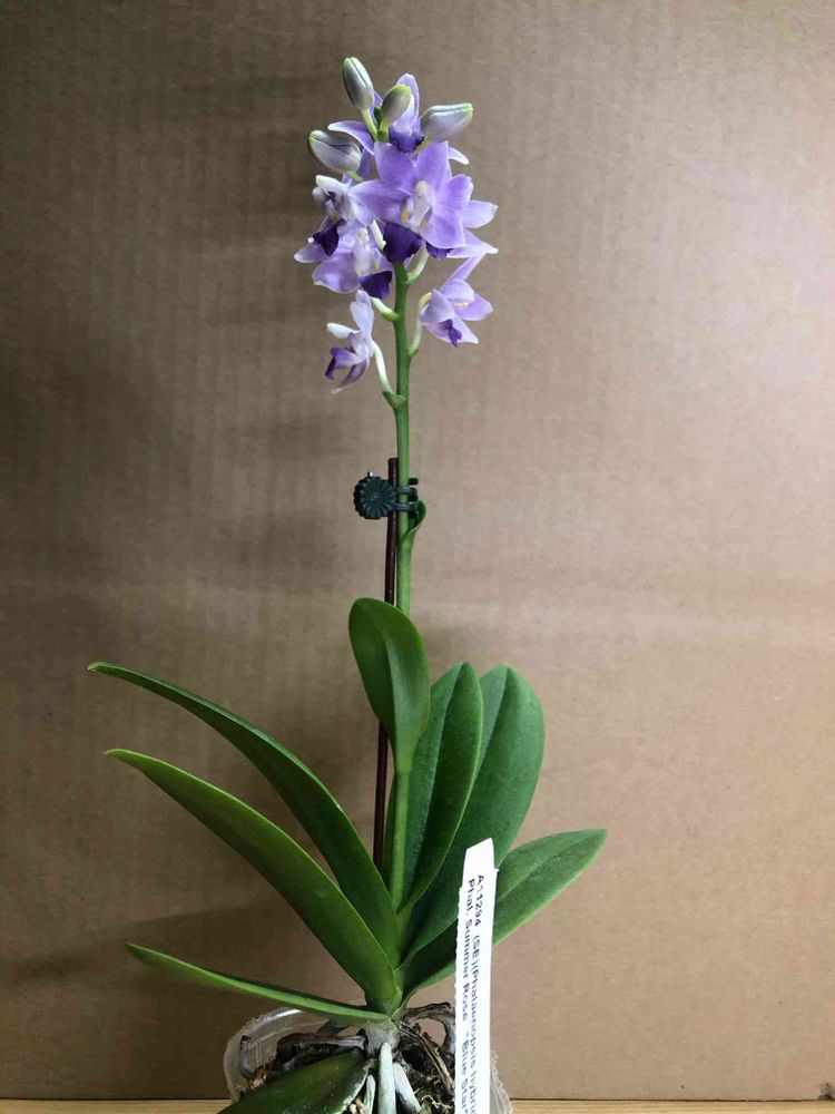 こちらの胡蝶蘭は交配親(プルケリマ)の遺伝の影響で成長点から花芽を出す事が良くあります。