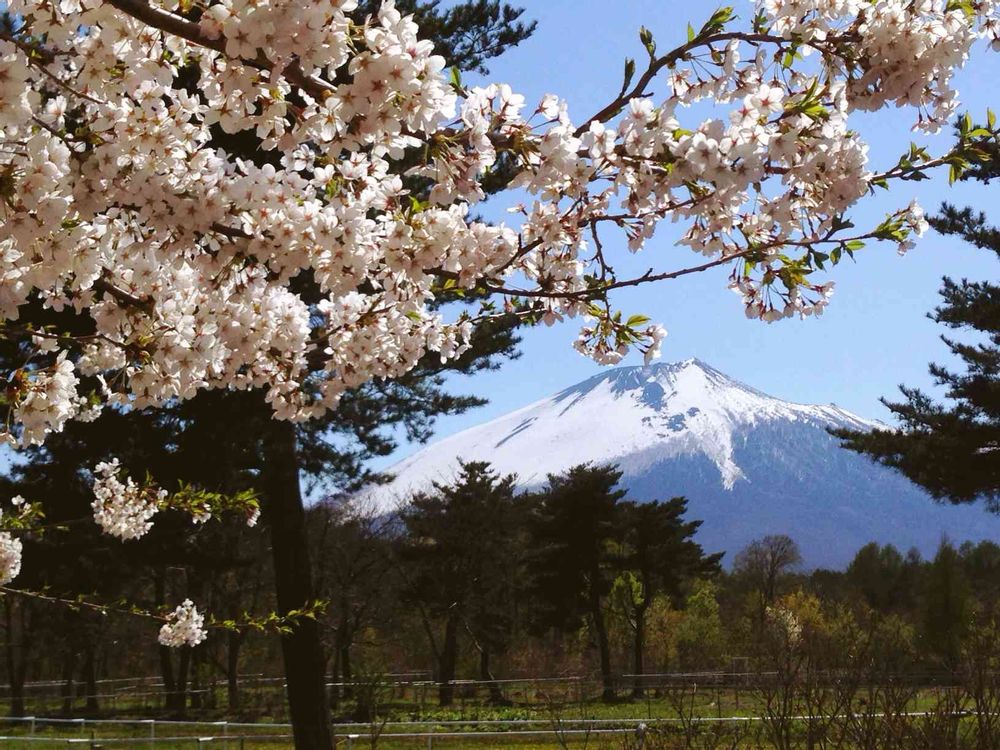 桜と岩手山♫