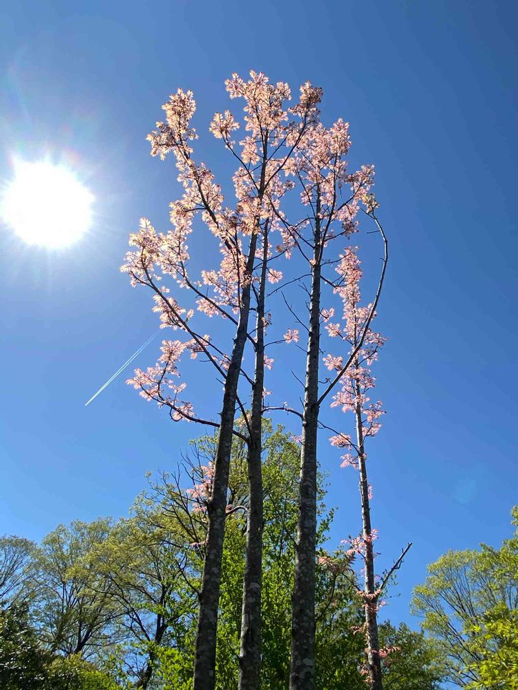 チャンチンという木だそうです。別名、雲破りとか。すらっとした樹形と新芽の色がいいなあ。