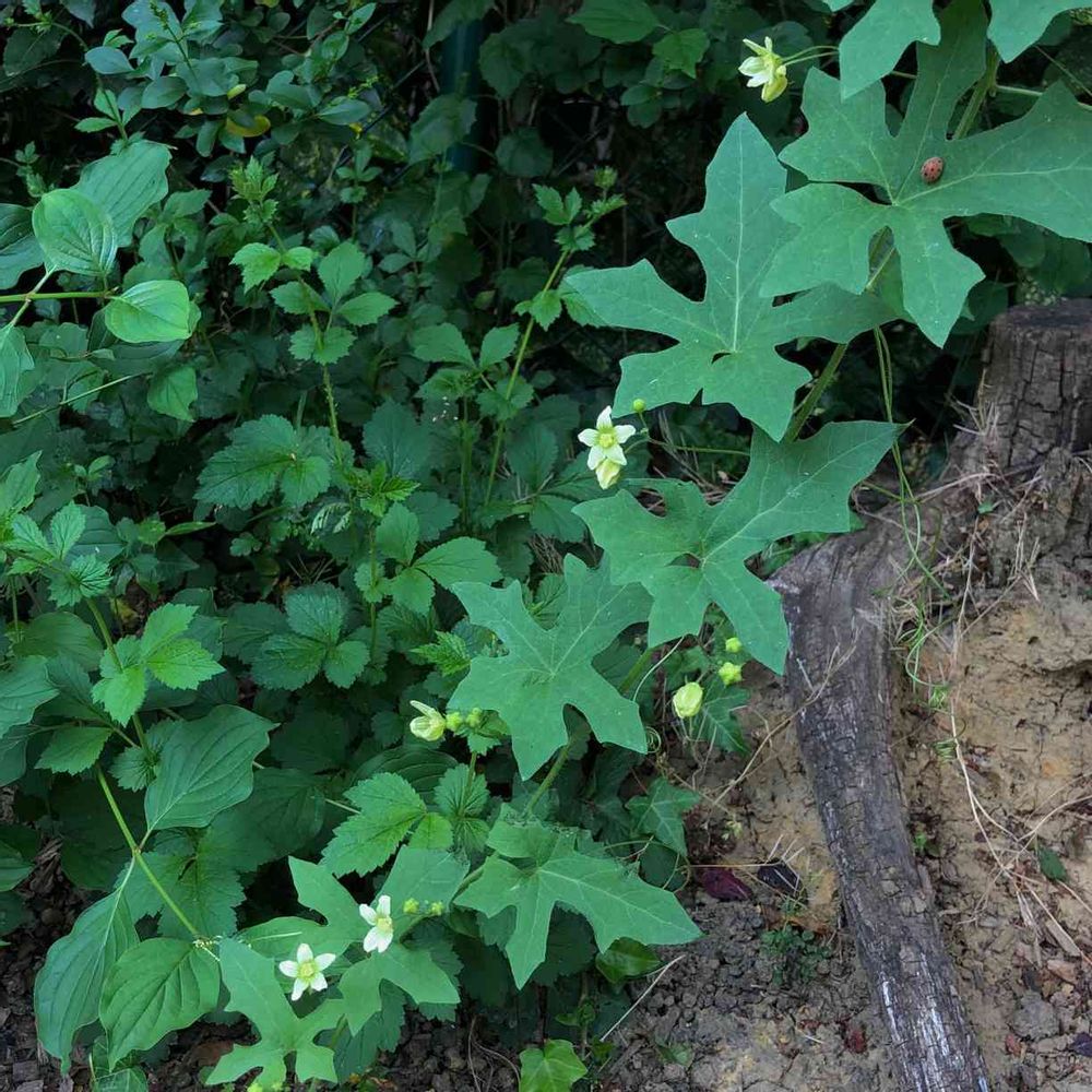 ウリ科なんだけど、大根みたいな凄い根っこが出来るみたい‼️赤い実も見てみたいんだけど、トトロの小径なので、多分手入れに来たら抜かれちゃう運命😢