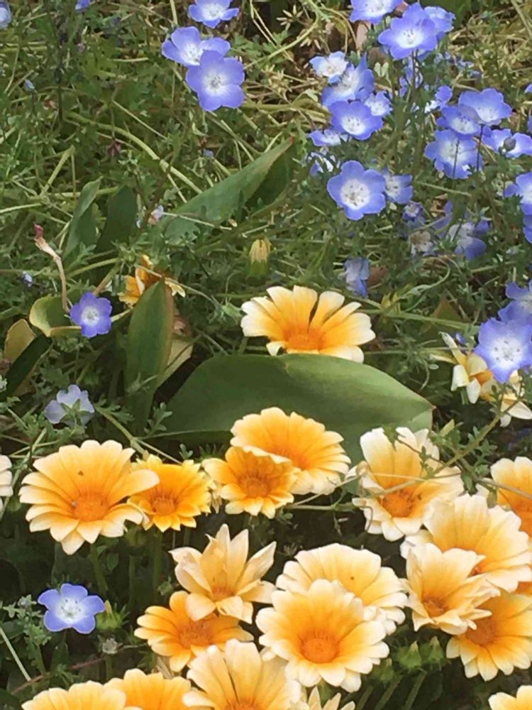 ガザニア,ネモフィラ,黄色と青のコントラストの投稿画像