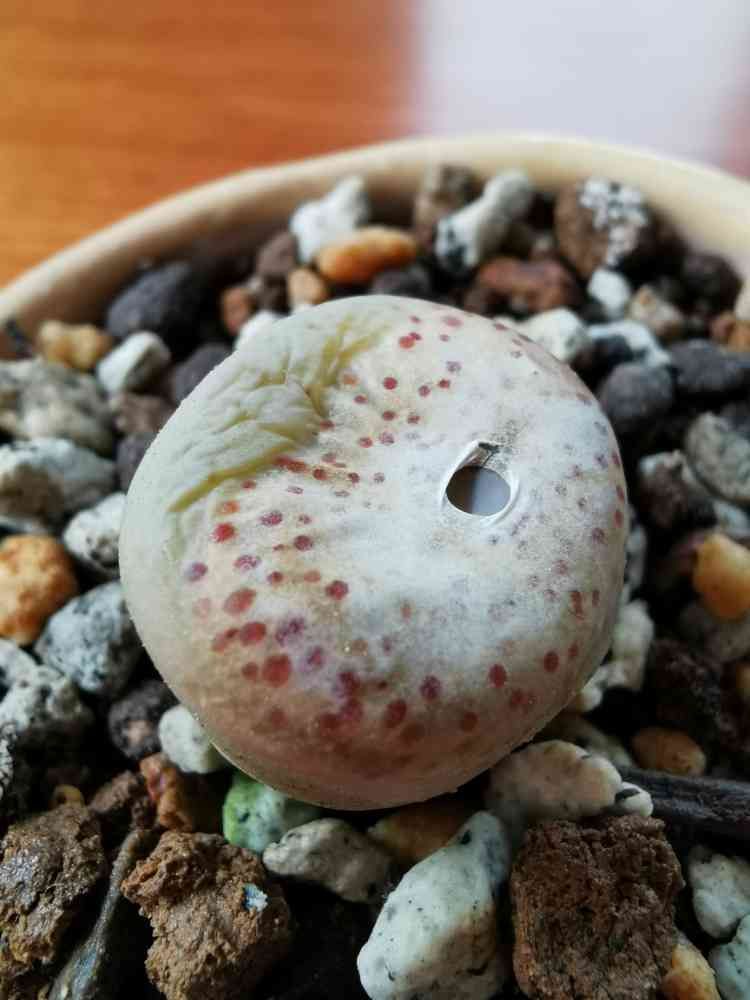 なんとか脱ごうとして、皮を破る圧力をかけるためなのか、急速に徒長してきました。ホムセンのデロデロに徒長したリトープスって、こういうメカニズムで徒長するのかも?