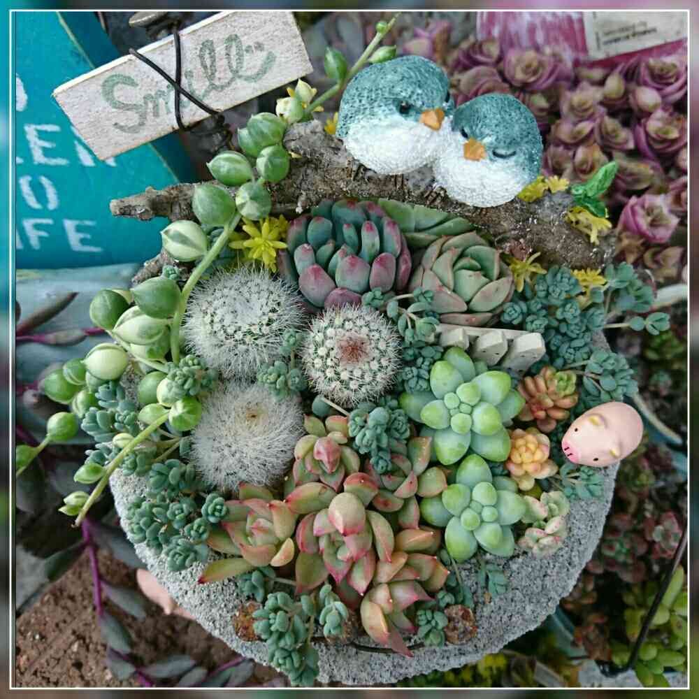 さん(^-^)/おはよう😃お久しぶりです😊サボテン🌵も一緒で素敵な寄せ植えですね〜✨🐤🐤ちゃんも可愛くて👍😃いいね💕
