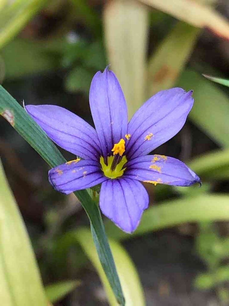 赤紫のオーソドックスなニワゼキショウより落ち着いた色合いの紫色。