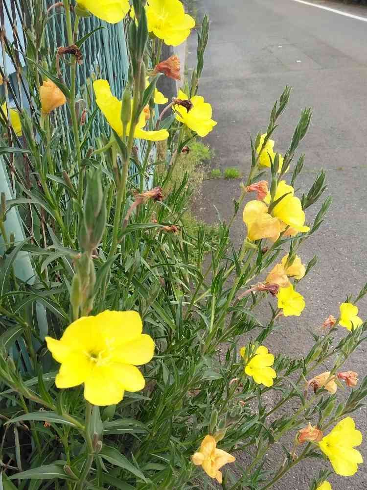 月見草、とよんでいます。海辺に咲いていた思い出の花が海無し県でも咲いています。