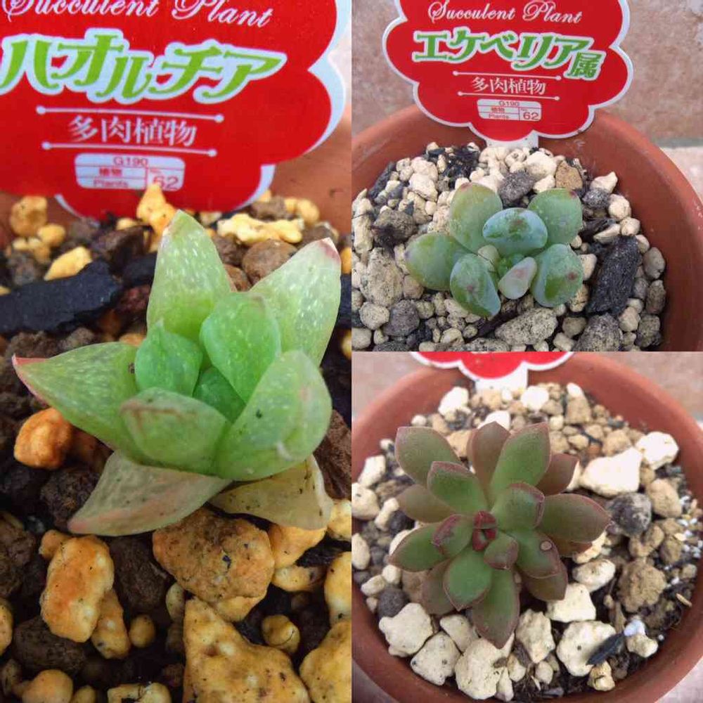 右二つがエケベリア、左の子がハオルチア…だそうですが?