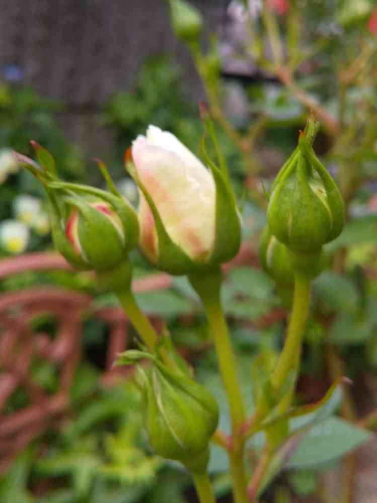 咲いたら少し残念な姿になるので、つぼみの今の時期がとても美しいミニバラです。